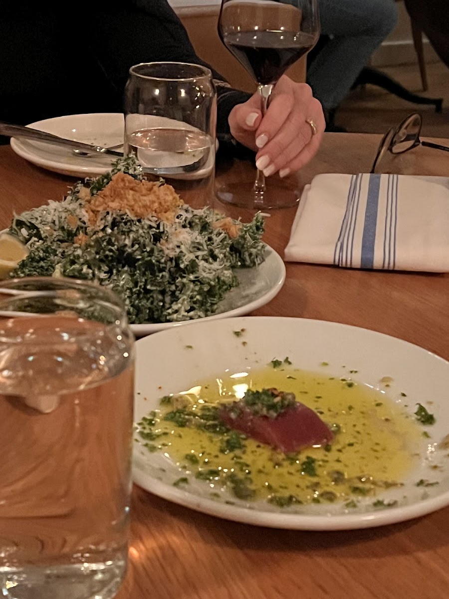 Actually insanelyyyy good. The roasted chicken with polenta is weirdly the best chicken I’ve ever had. It’s so good. The mushroom pizza everyone loved. My mom also said it was some of the best pizza she’s had. Get the tuna - it’s great. The kale Caesar is amazingggg. The garden salad is better than average but nothing too special. They also have great mocktails. The vibe is great for a group dinner, date, anything. A bit fancy. Really cool.