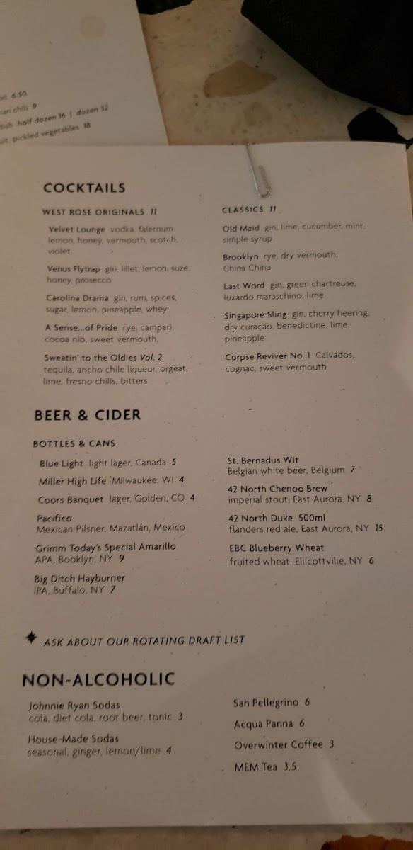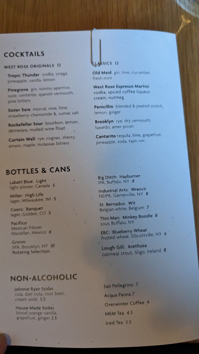 To complement the food, West Rose presents a well-rounded drink menu including carefully crafted cocktails like the Bloody Mary, alongside a diverse selection of beers that range from local craft brews to approachable classics. This makes it an easy spot for everything from a casual catch-up with friends to a quiet evening at the bar.
